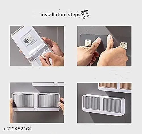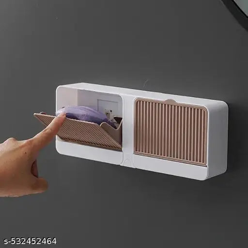 QUINZEE Clamshell Soap Box Wall-Mounted with Cover, Double Grid-Asphalt Toilet Laundry Soap Draining Rack Bathroom Soap Holder (Pack of 1)